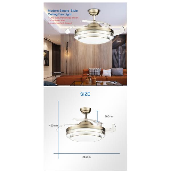 AC70W Remote Control Ceiling Fan Light 42 Inch 55*55*39cm Images |